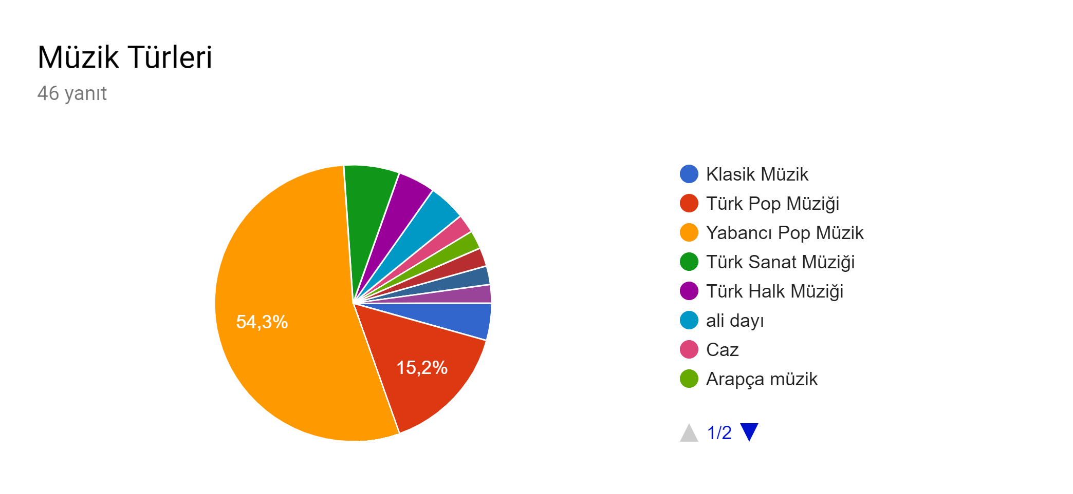 Okulumuzdaki zil müziği anketi tamamlandı. Ankete toplam 46 öğrenci katılmıştır. Anket sonuçlarına göre ankete katılanların %54,3′ ü yabancı pop müzik, %15,2′ si Türk Pop Müzik ve %6,5′ i de Türk Sanat Müziği yanıtlarını seçmişlerdir.